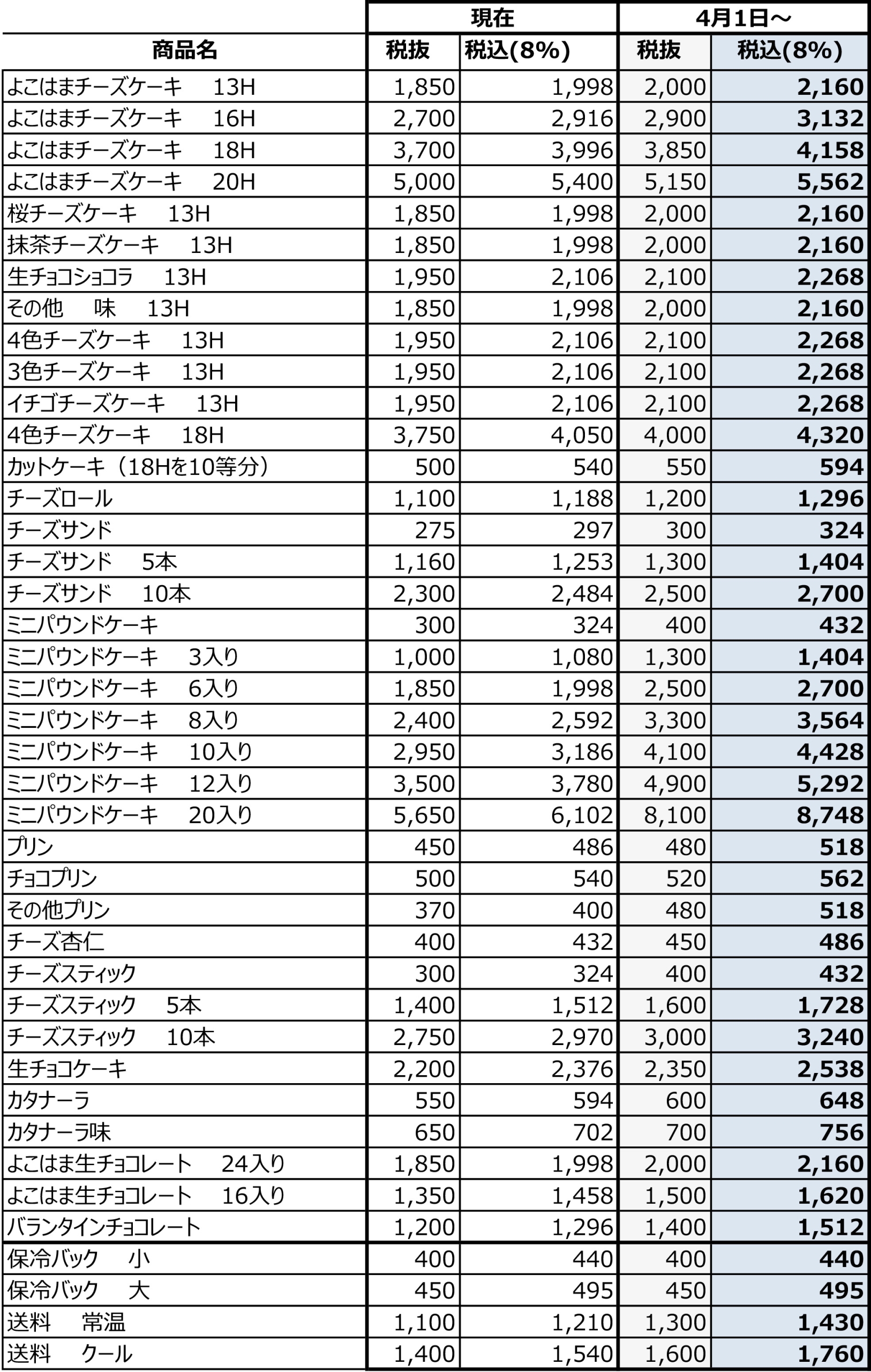 価格改定のお知らせ(2026年4月1日販売分より)